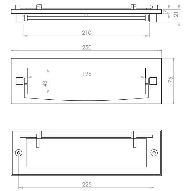 Aperture size: 296 x 43mm Fixing Bolt Centres: 225mm
