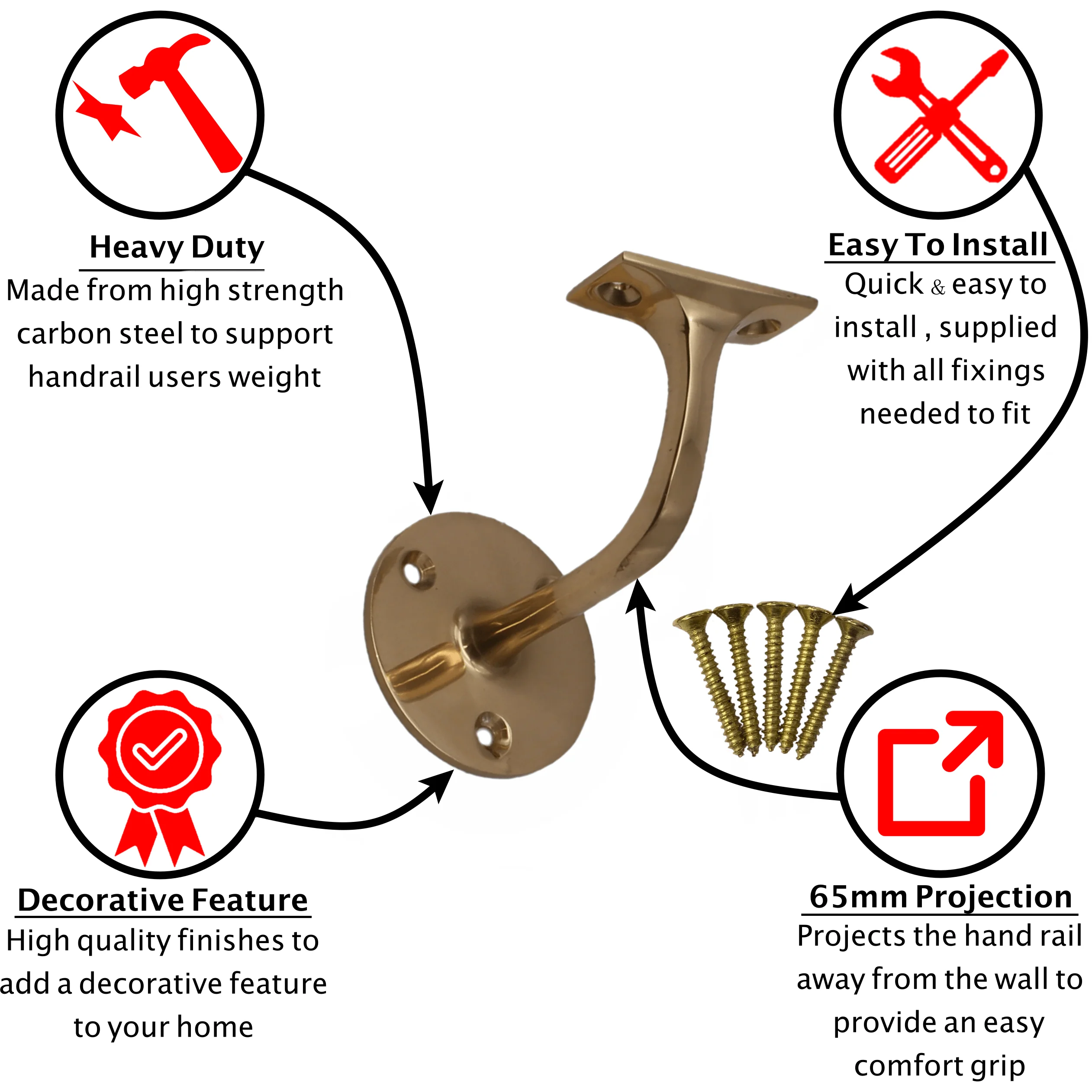 Handrail Bracket Heavy Pattern - 64mm / 2.5 Inch Projection - Brass Finish