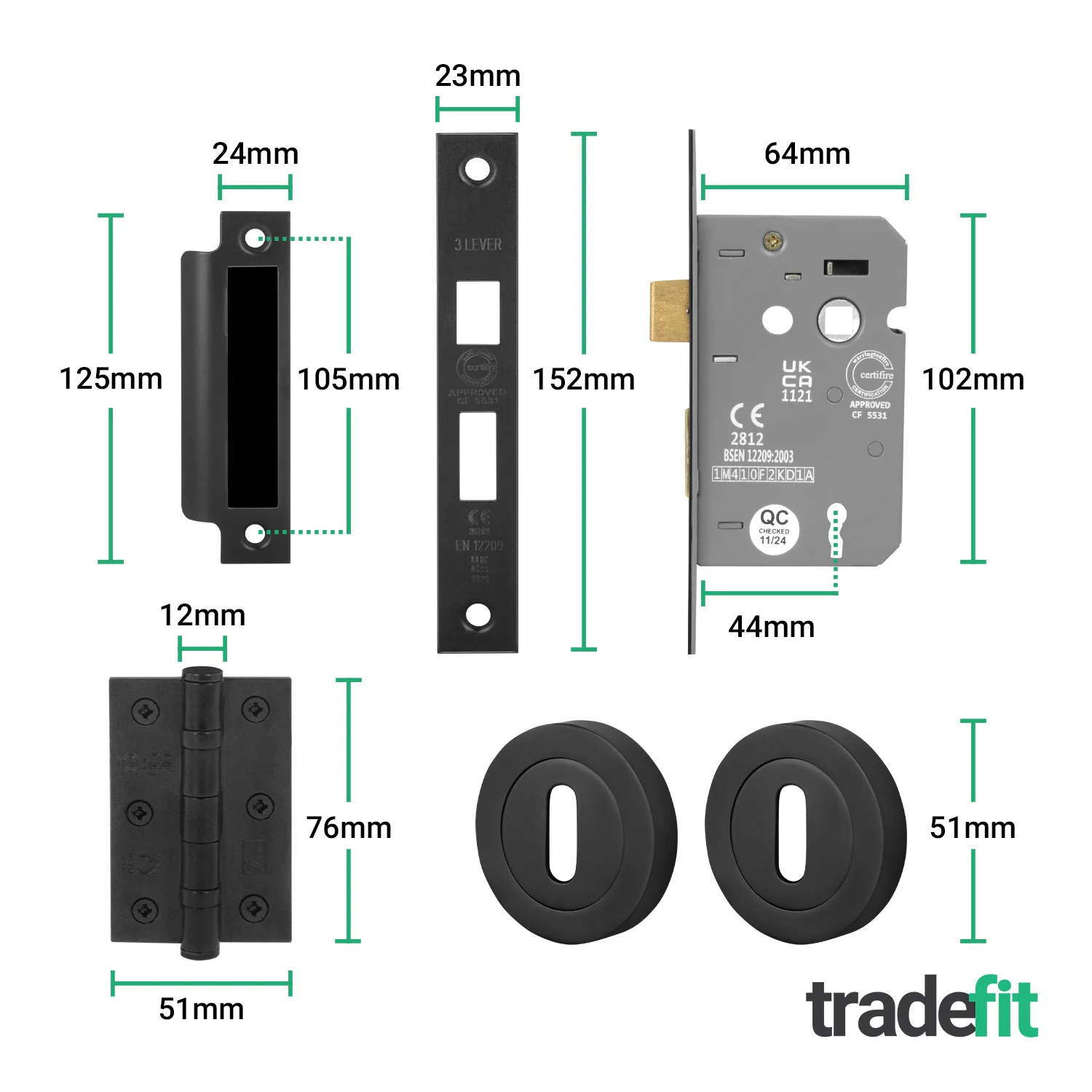 Olbia Matt Black Lever on Rose Door Handle Pack - 64mm Sashlock—