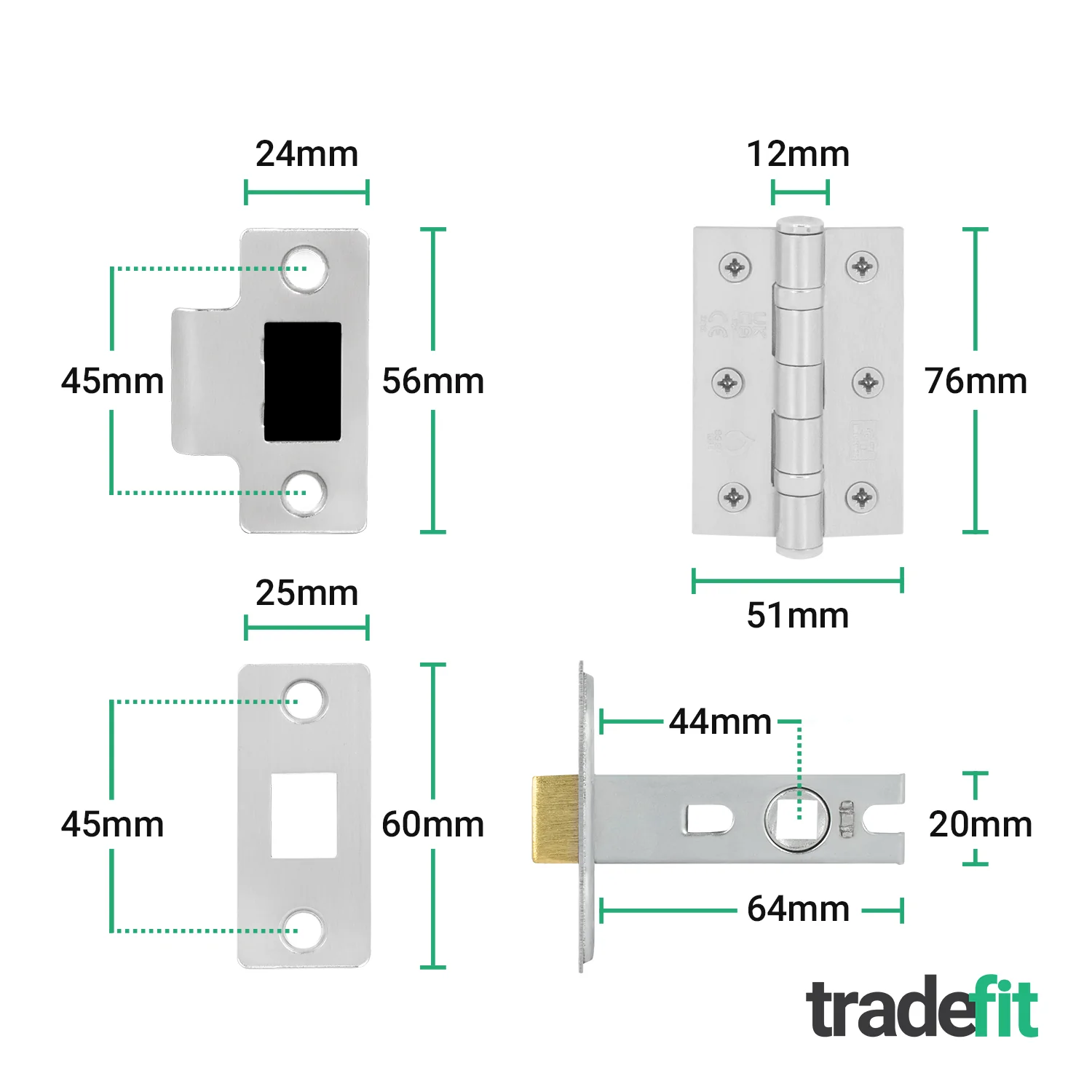 Victorian Rectory Satin Chrome Lever Door Handle Pack - 64mm Latch - 76mm Hinges