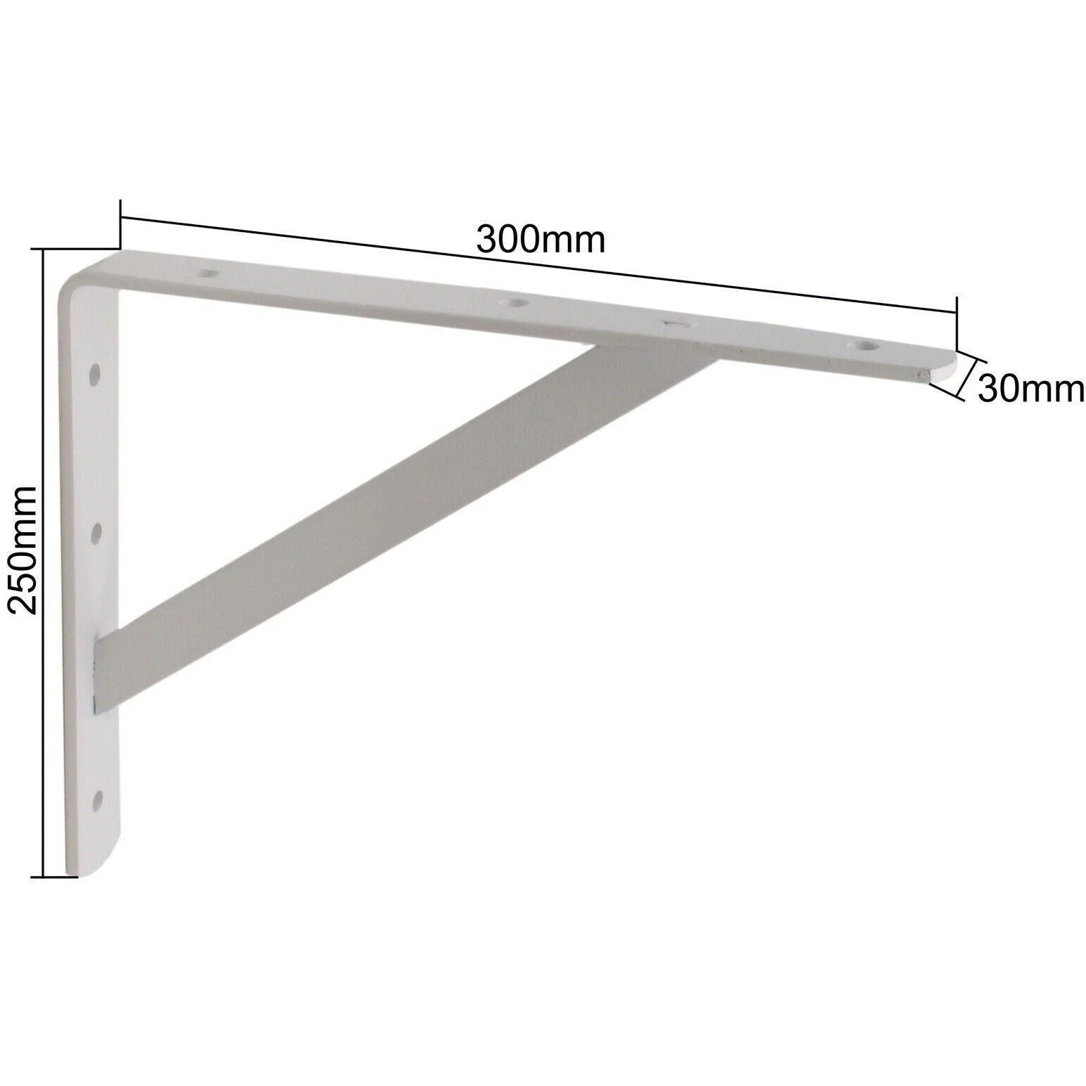 Strong Shelf Brackets Pair Reinforced Stay Arm Heavy Duty - 250 x 300 x 30 x 4mm - White - PAIR