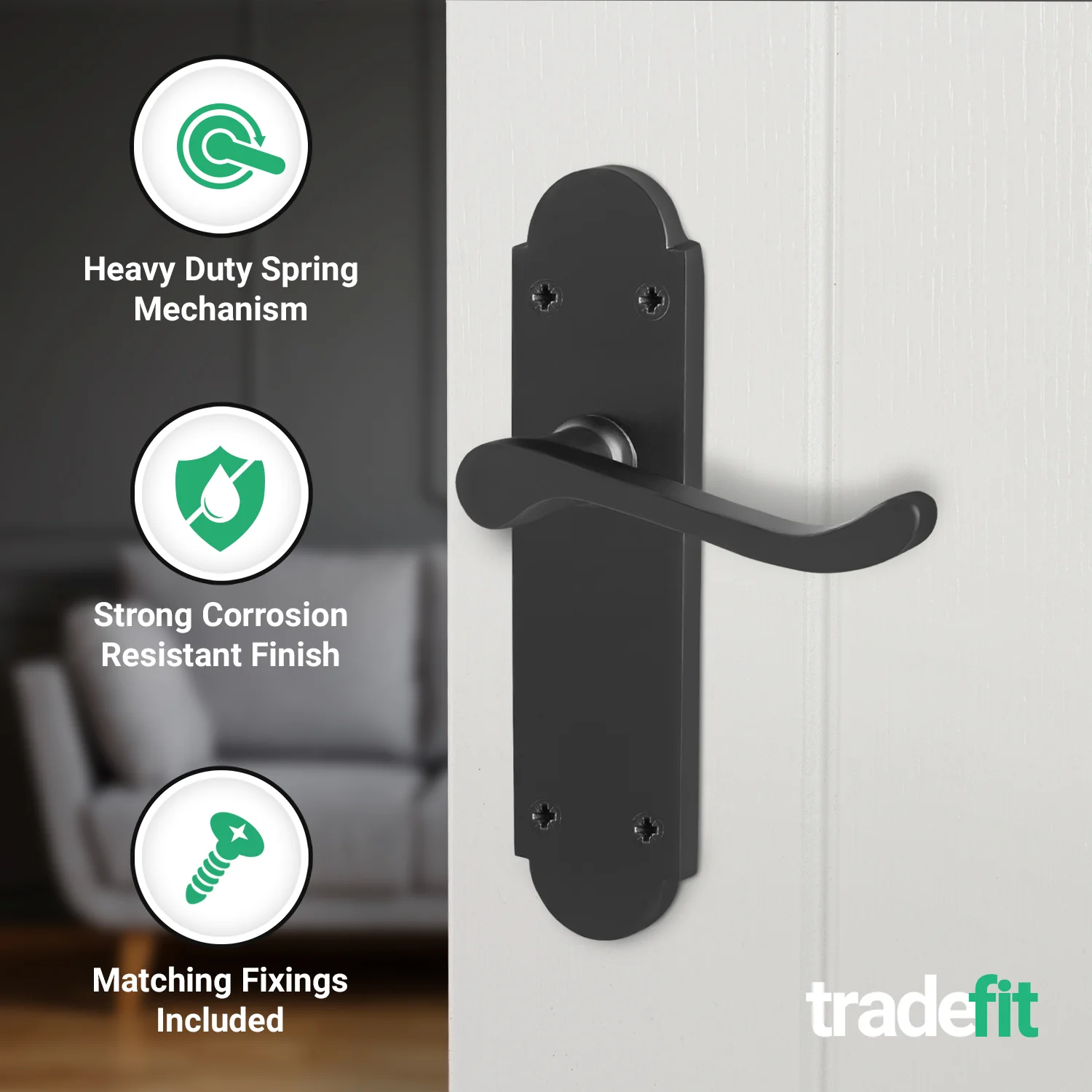 Our Victorian Rectory matt black lever on backplate door handles are ideal for internal doors in both domestic and light commercial settings.