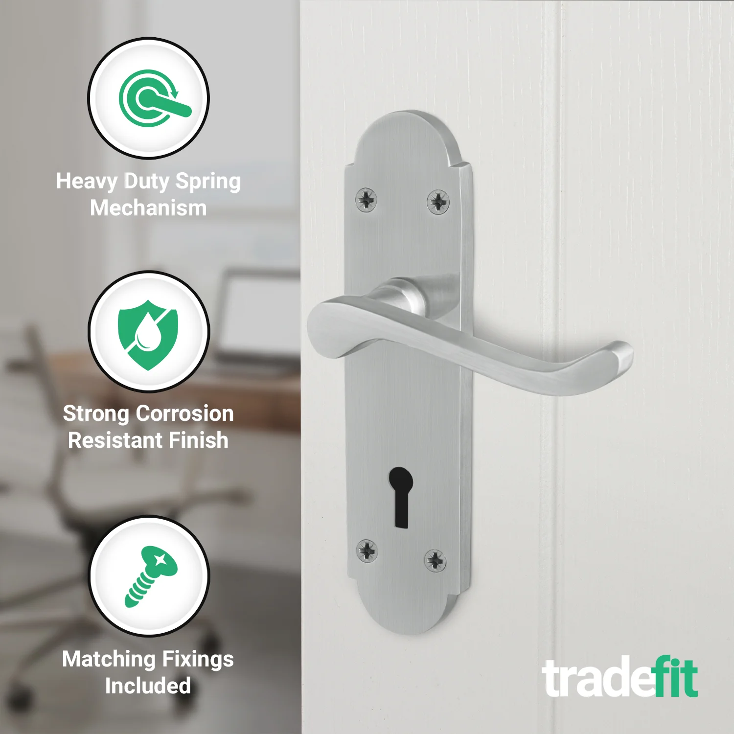 - Handles feature a strong integrated spring mechanism, keeping the lever handle firm, silent and perfectly horizontal